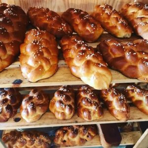 Die wichtigsten Zutaten für unser Brot sind Liebe und viel Zeit. Wir backen Natursauerteigbrot aus Bio-Getreide und geben unseren Teigen ganz viel Liebe und Zeit zum entspannen. Durch die lange Teigführung wird das Brot im traditionellen Schamottofen dann außen knusprig, innen fluffig und unglauglich bekömmlich.
