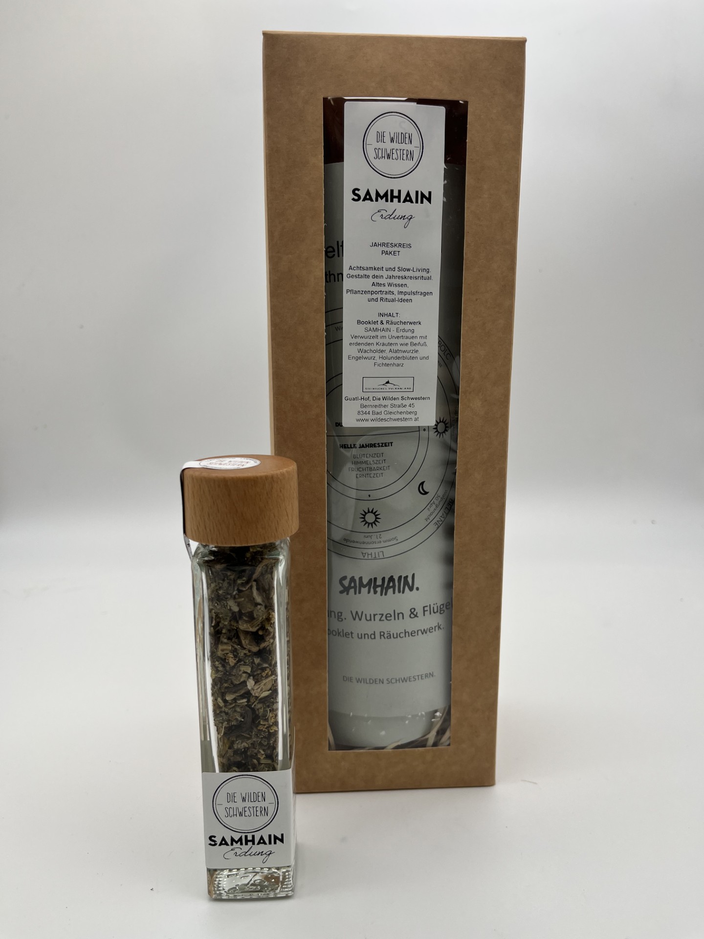 mit Booklet und erdendem Räucherwerk.